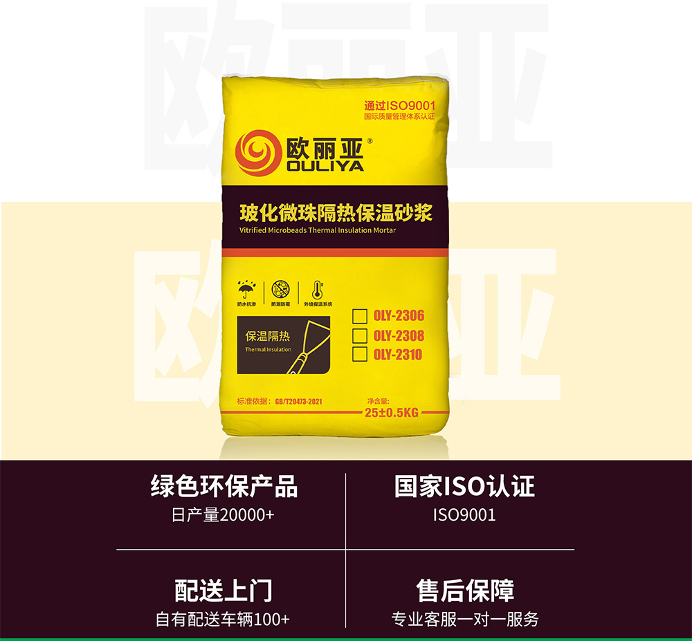 歐麗亞歷經近十載的誠信經營,憑借其優良品質和專業服務在業界贏得了良好的信譽。占地面積約1.2萬平方米,擁有三個獨立生產車間、獨立實驗室、樣板室并擁有十余套高速干粉砂漿混合機,形成日單班產量500噸的強大生產能力,并已通過了ISO9001國際質量管理體認證。