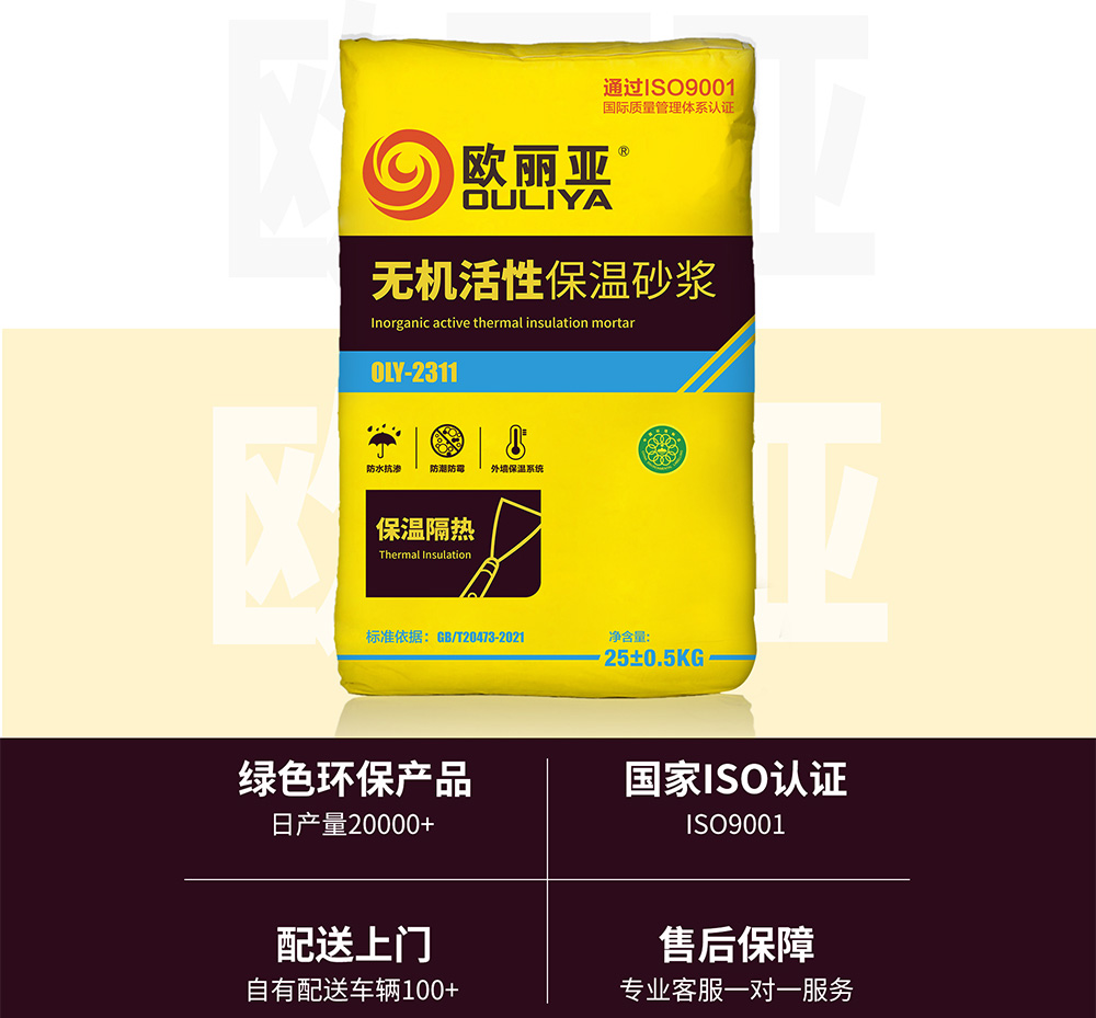 歐麗亞歷經近十載的誠信經營,憑借其優良品質和專業服務在業界贏得了良好的信譽。占地面積約1.2萬平方米,擁有三個獨立生產車間、獨立實驗室、樣板室并擁有十余套高速干粉砂漿混合機,形成日單班產量500噸的強大生產能力,并已通過了ISO9001國際質量管理體認證。